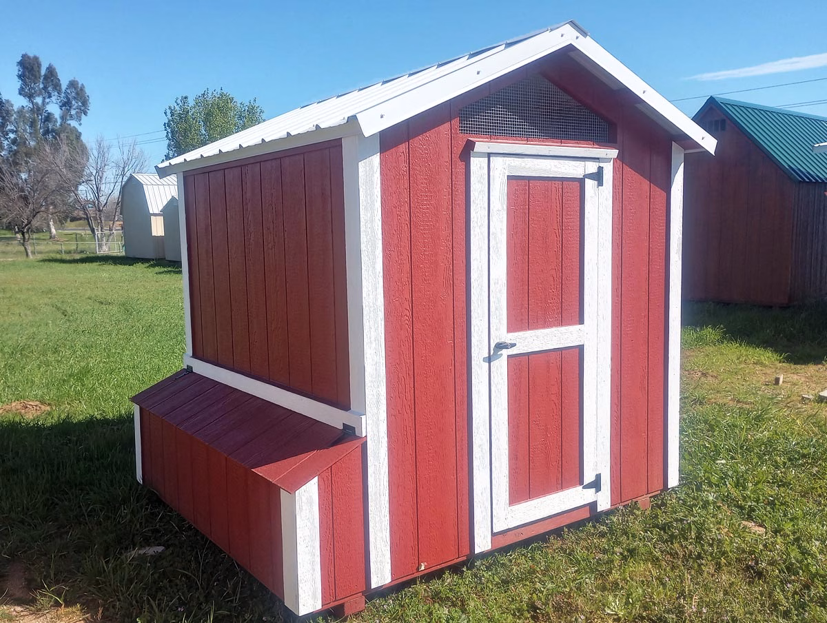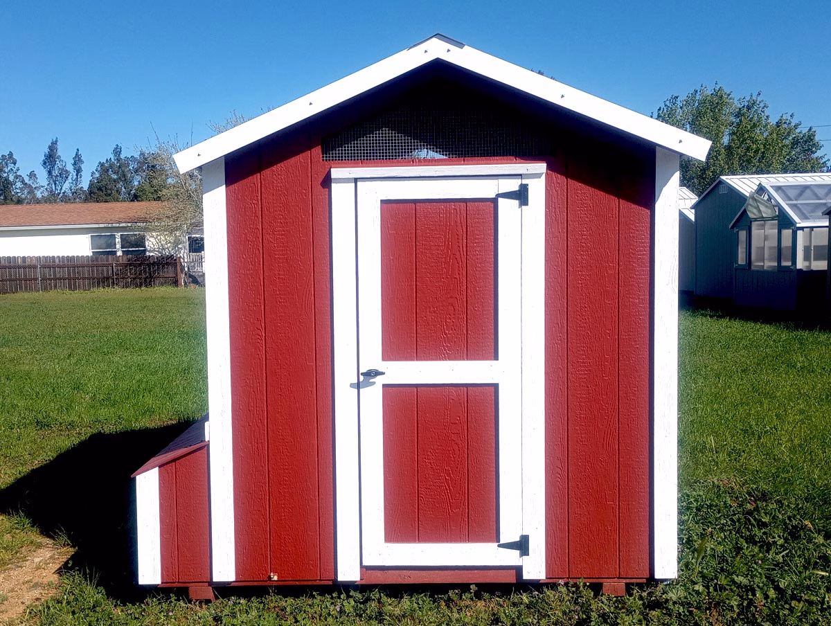 Now here…chicken coops for sale at Sequoia Sheds! We have a gentleman making 6’x7′ wood chicken houses or coops for us to sell. They come complete with nest boxes, roosts, ventilation, chicken door and ramp, and a person door. Good size for a flock of up to 20 chickens.