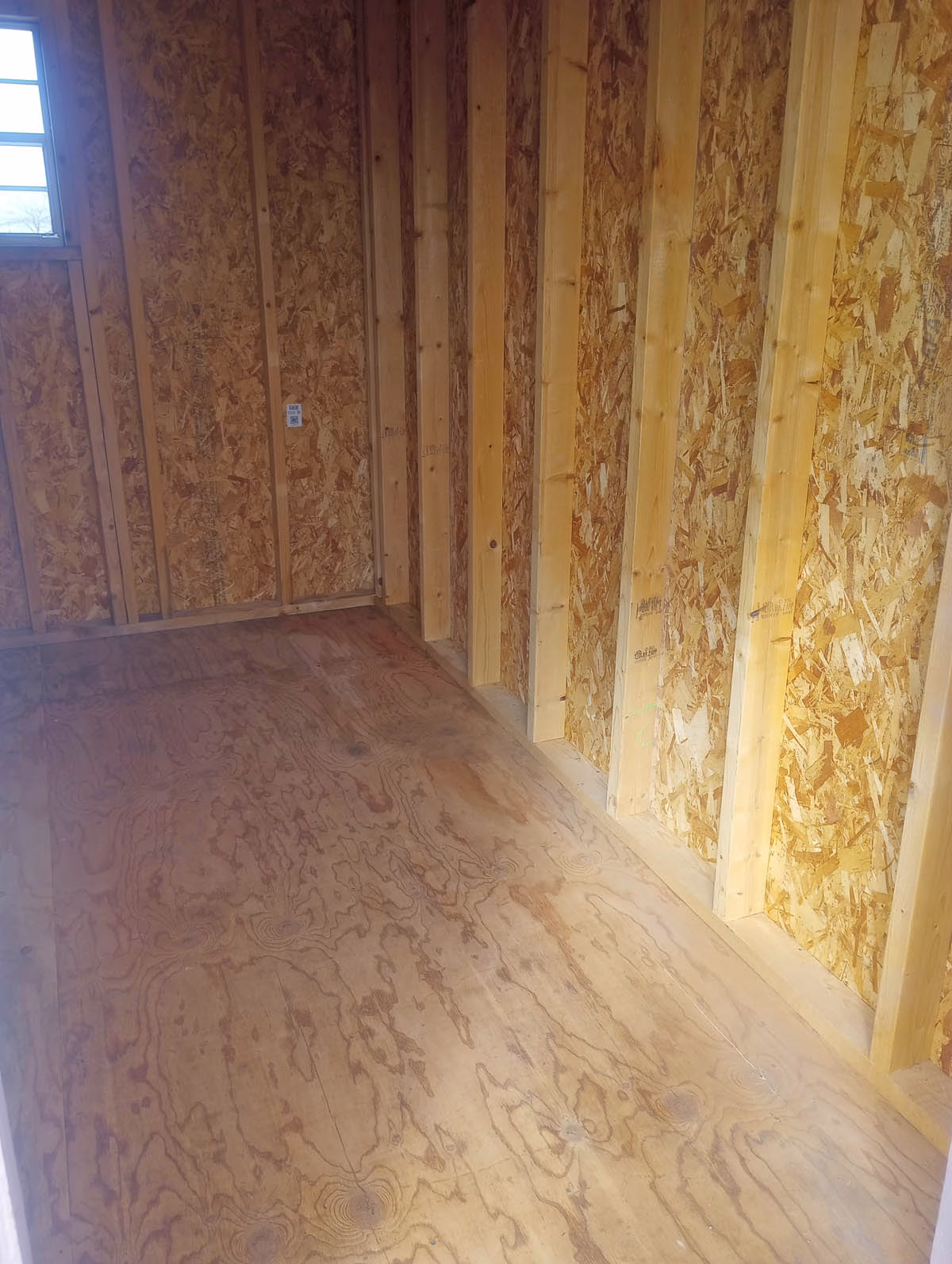3/4″ tongue and groove plywood floor, Sturdifloor