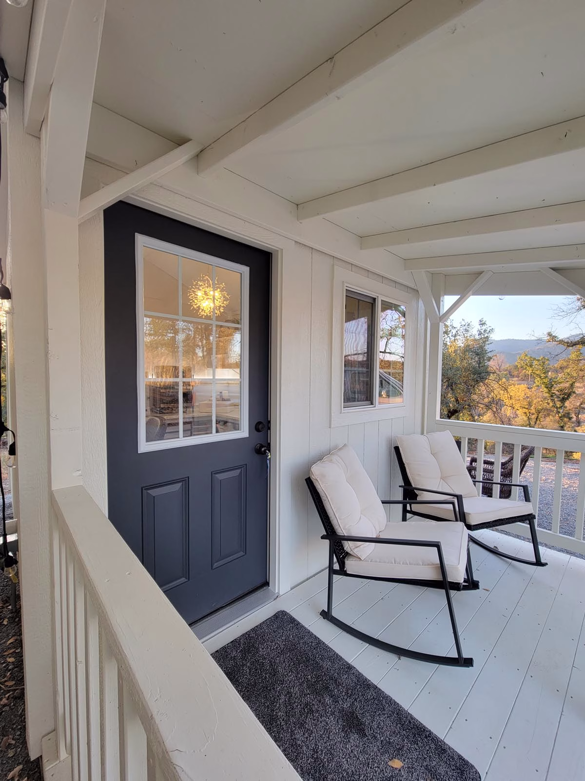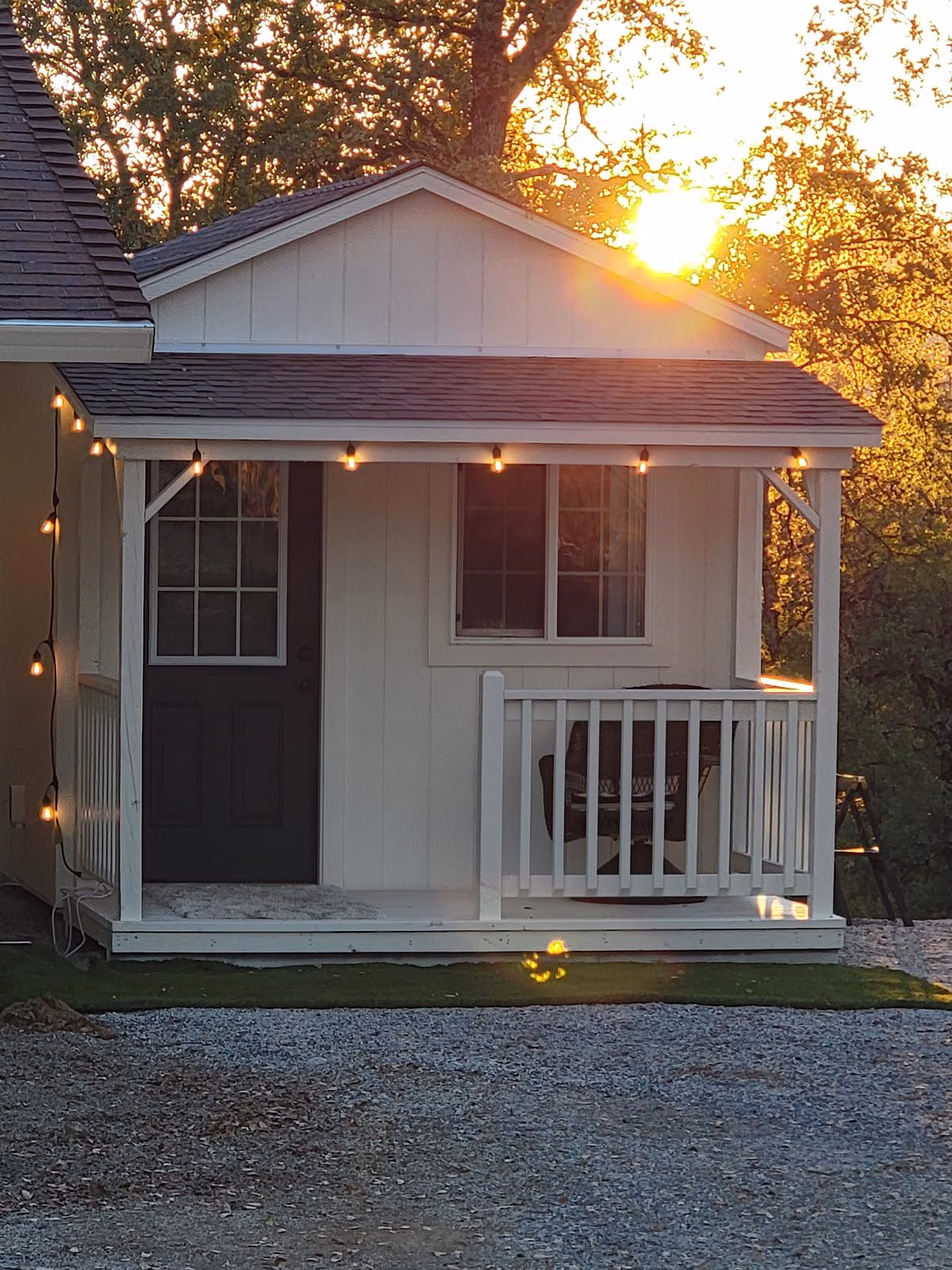 The Cottage is a beautiful addition to any landscape. It has 8′ tall side walls, a residential 9-lite door, and two opening windows. The side porch fits beautifully up against the cottage and gives a shaded, sheltered entry. Also, the porch is wide enough to set up a couple chairs on to relax in.